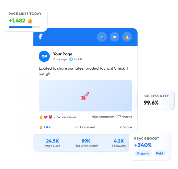 When someone visits your Facebook page, the first thing they check is your like count. A higher count = instant trust. It also signals Facebook’s algorithm to show your page to more people.