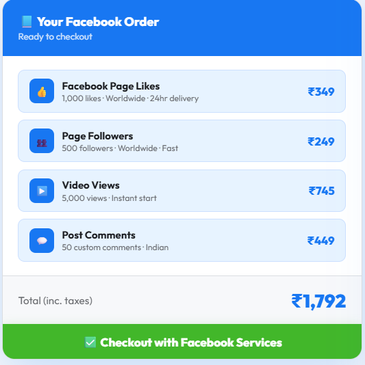 Pick from page likes, followers, video views, comments, group members or any other Facebook service you need.
